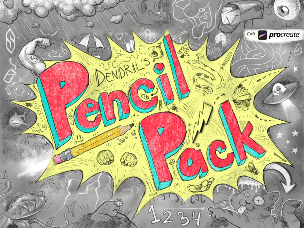 You'll get a ZIP file containing 11 pencil brushes, 3 erasers, 1 Blending Stump, 1 Hand Smudge Stamp, and 5 shaders - PLUS a ZIP file containing 5 high-resolution paper textures